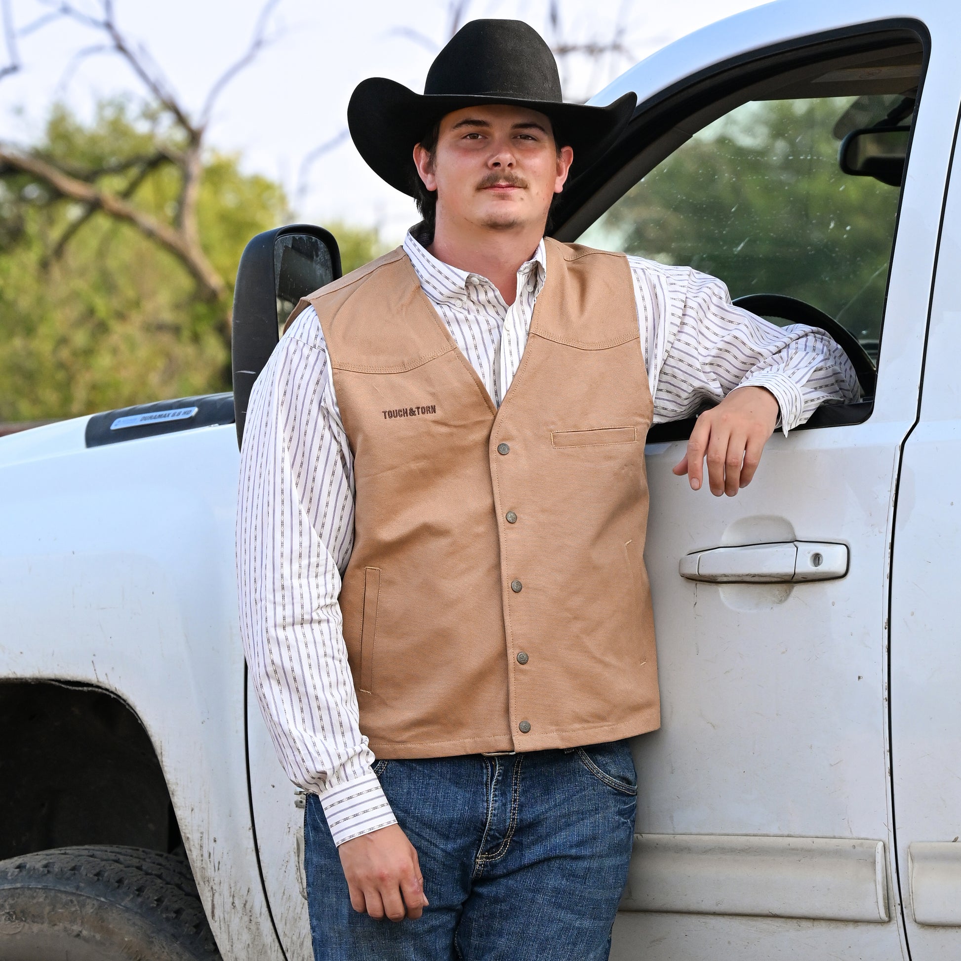 Men’s Western Cotton Canvas Vest – Durable Workwear & Outdoor Riding Style - Tan